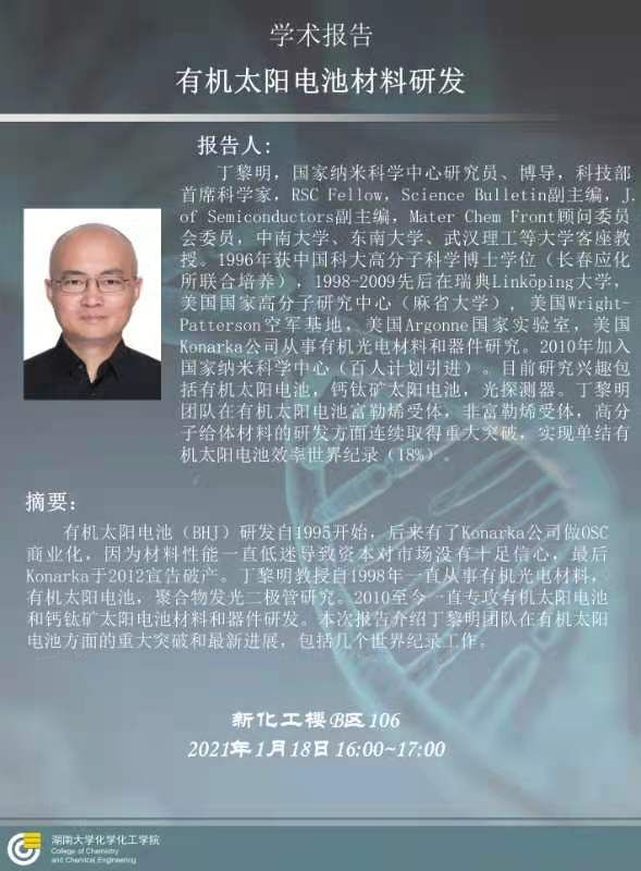 主講人:丁黎明,國家納米科學中心研究員、博導