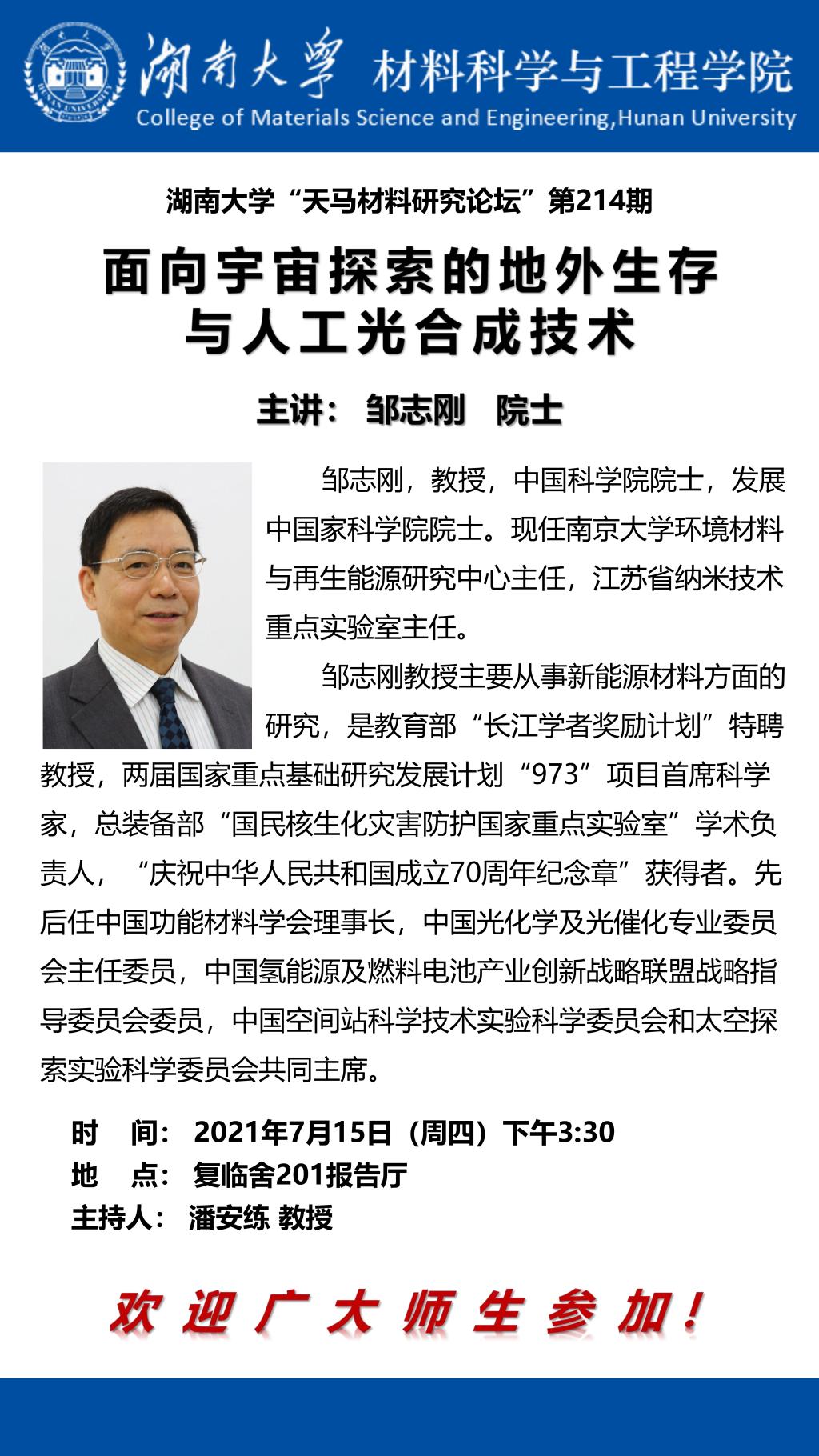 學術地點 復鄰舍201報告廳 主講人 鄒志剛 院士