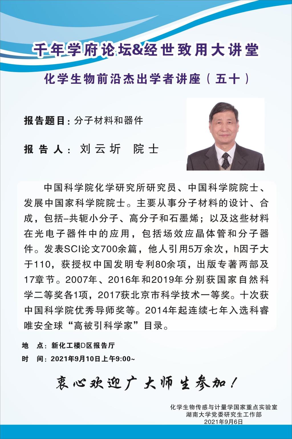學(xué)術(shù)地點(diǎn) 新化工樓D區(qū)報(bào)告廳 主講人 劉云圻 院士