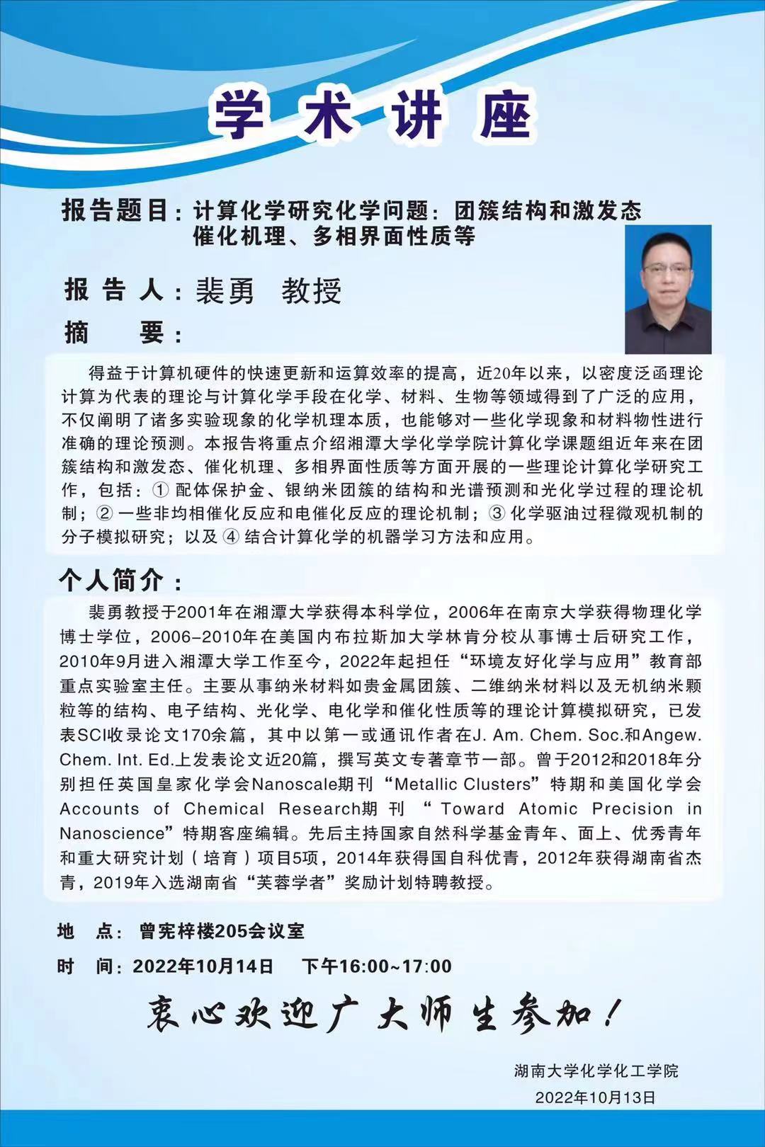 學術地點 曾憲梓樓205會議室 主講人 裴勇教授