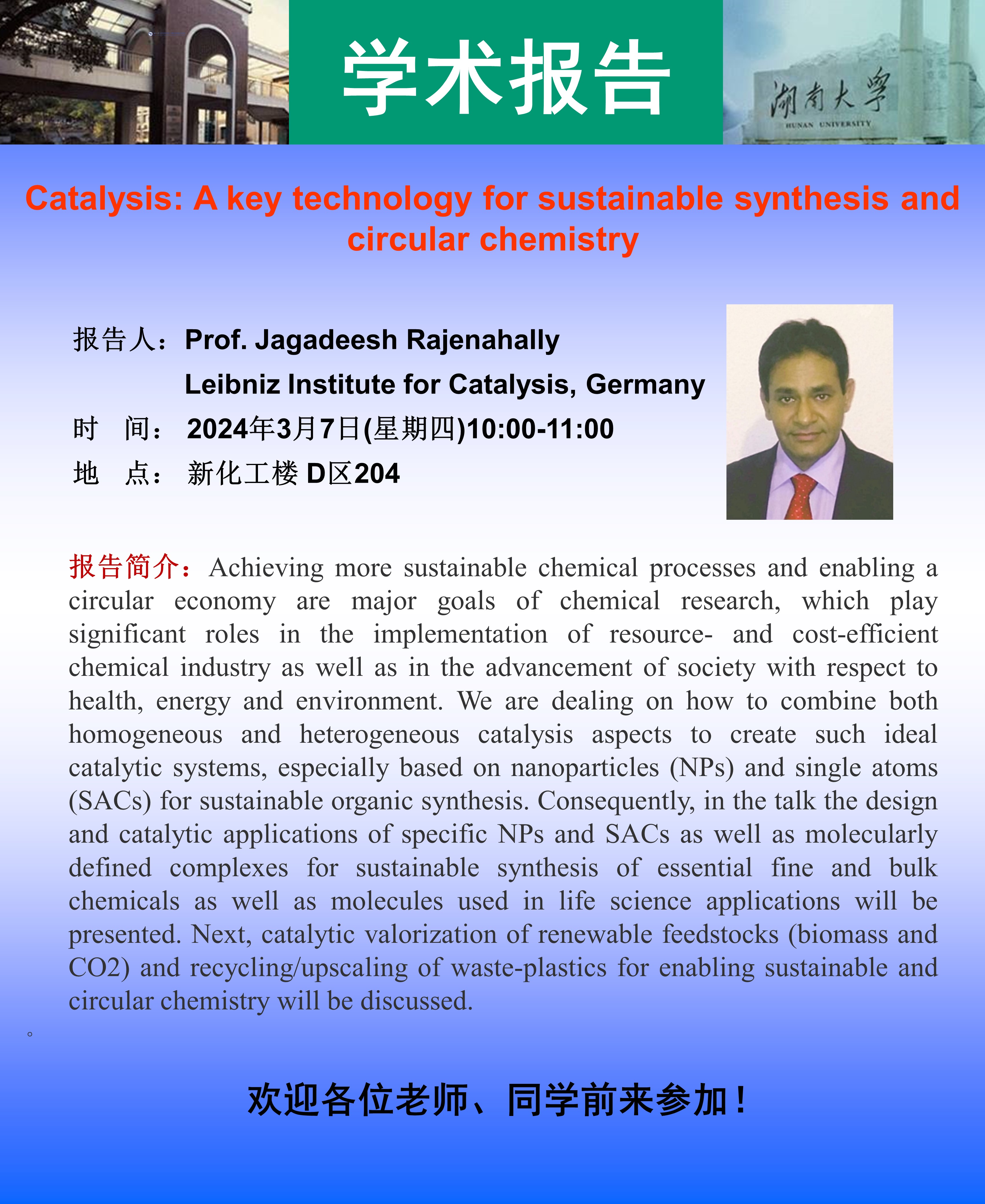 學術地點 新化工樓 D區204 主講人 Prof.jagadeesh Rajenahally