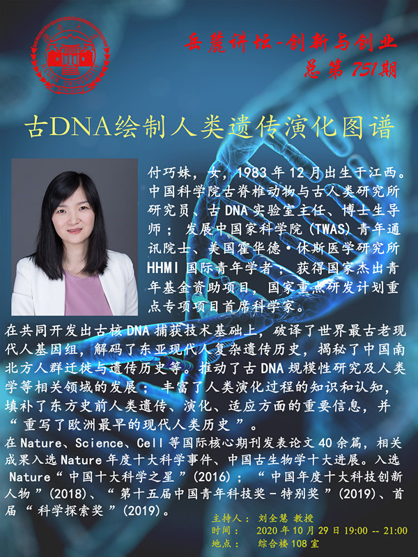 報(bào)告題目:古DNA繪制人類(lèi)遺傳演化圖譜